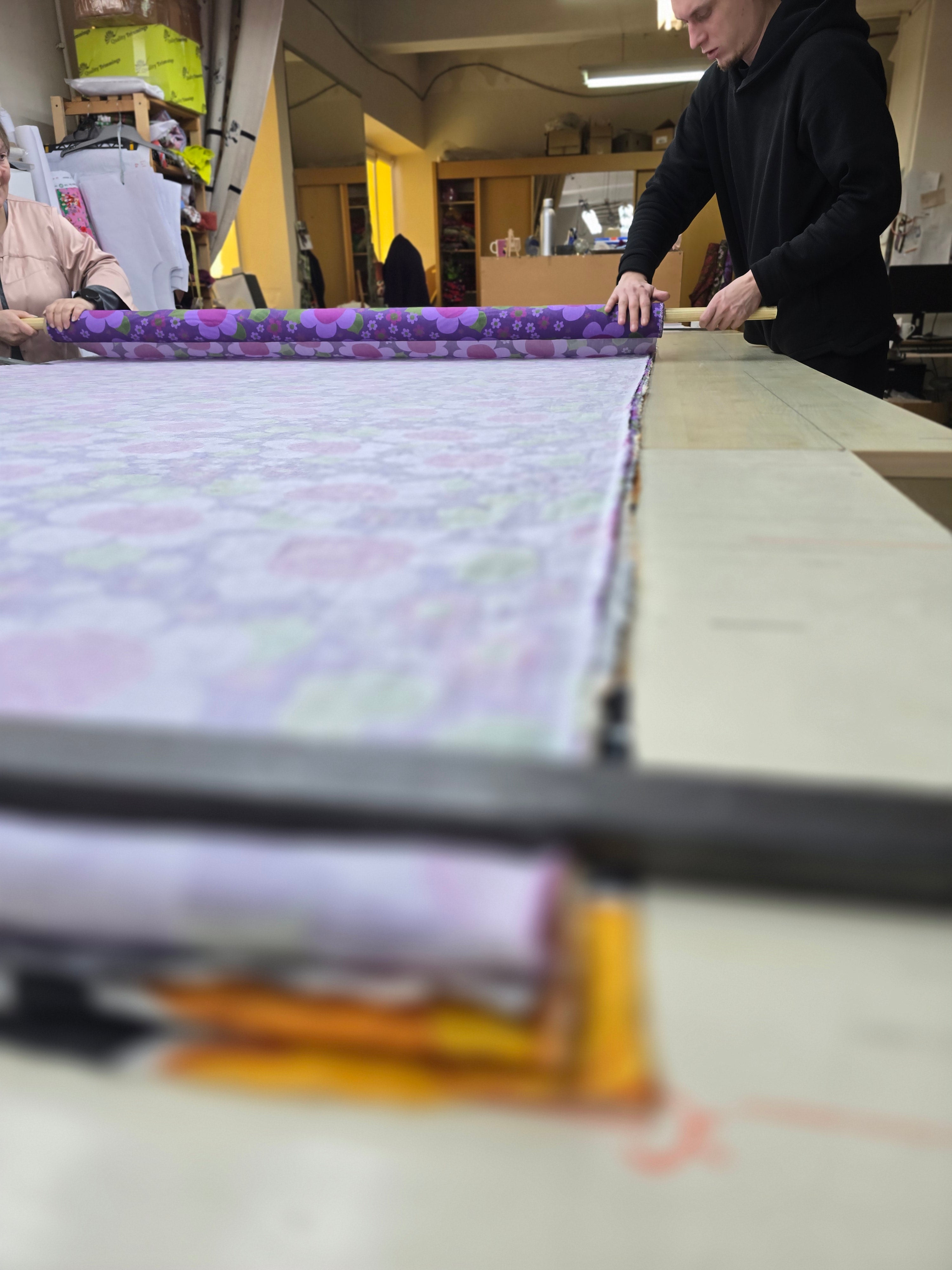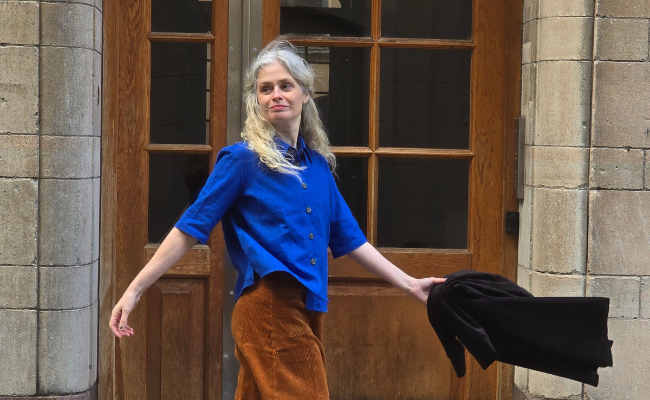 Vi designar kläderna i Stockholm och syr upp i små serier i Litauen.