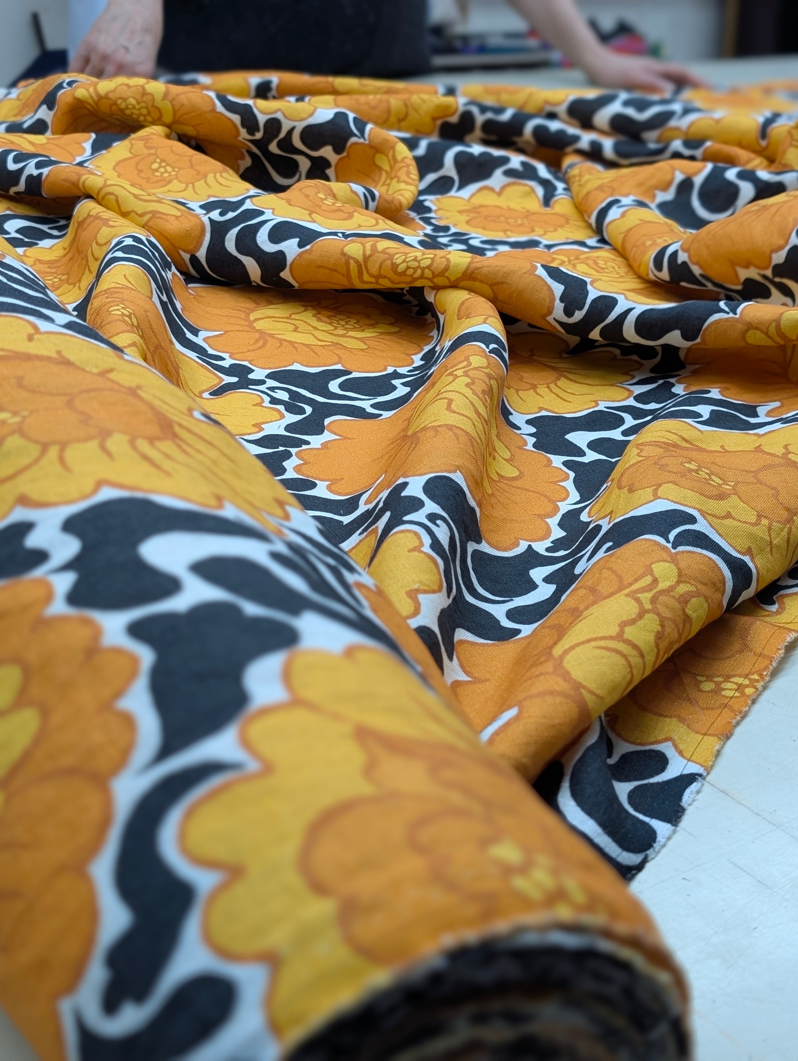 Retrotyger i all ära men Rino ville ha något helt eget. 2017 såg de första Rinotygerna dagens ljus. Samtliga skapade av Carina. Ett av de tidiga mönstren var Solblomma som fortfarande dyker upp i olika färgställningar.